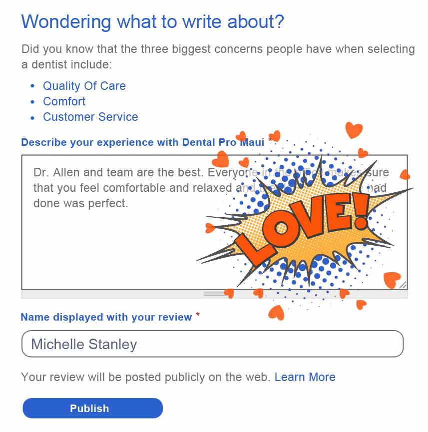 The best testimonials are specific and answer one or more of the concerns every buyer has before making a buying decision. The Five Star Review System™ helps your customers write testimonials that answer those concerns. It does this in two subtle ways.